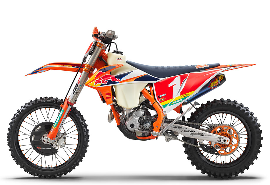 For 2021, the 350 XC-F is available exclusively in KTM Orange, while the more advanced 350 XC-F Kailub Russell has an exclusive KTM Factory Racing livery.