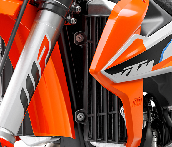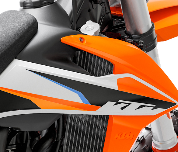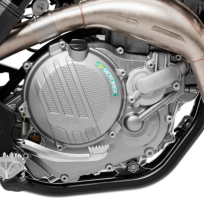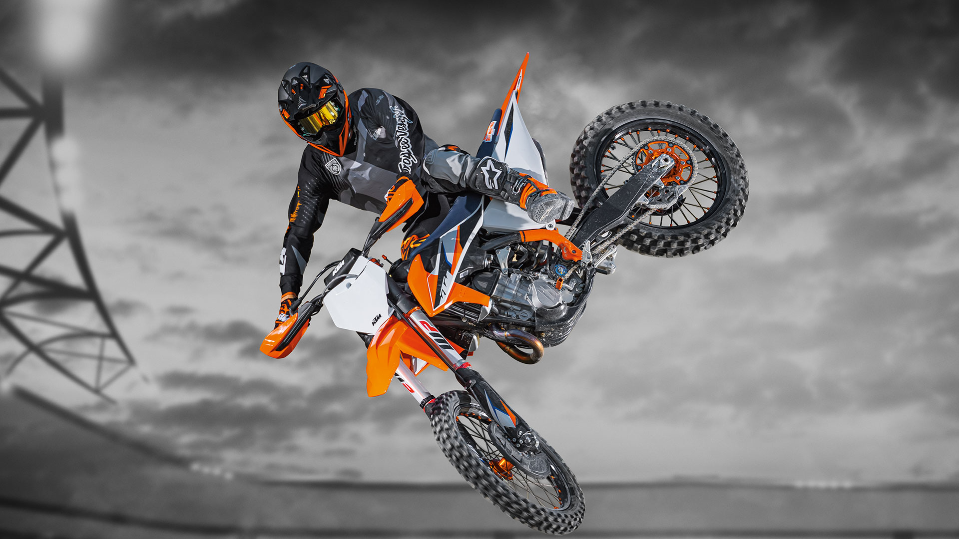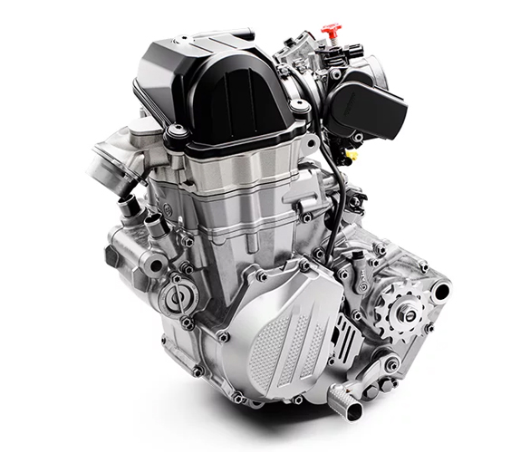 The 450 cc engine is the ultimate powerhouse when it comes to KTM’s competitive motocross range. Its compact, lightweight design features a single overhead camshaft cylinder head, fueled by the latest electronic injection system. This enables the impressive power to be distributed extremely efficiently throughout the rev range. Even with its super-beneficial electric starter, this model is still the lightest 450 cc engine on the MX market.