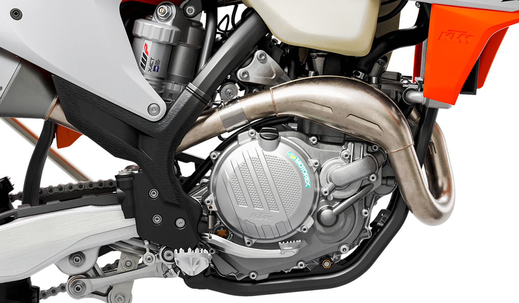 The design of the die-cast crankcases allows for minimal weight and a very centralized shaft configuration. This makes the engine short and compact, while contributing to an efficient centralization of masses. The engine covers also feature a solid surface structure, which reduces the wear caused by the rider’s boots. This way, your XC-F will keep looking better longer.