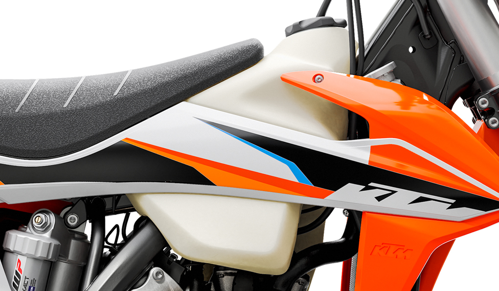 Sophisticated ´No Dirt´ footpegs prevent clogging of the footpeg pivot, even when digging in deep ruts. Looking for a higher riding position? Then just mount the footpegs of the EXC models, which are 6 mm higher than the XC versions.