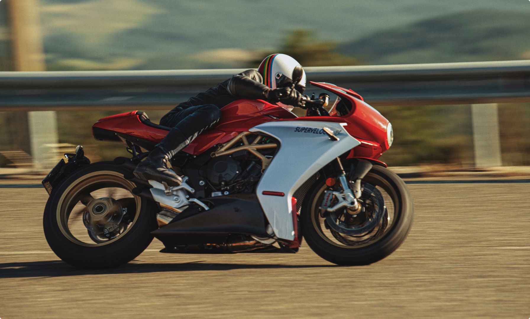 In terms of power, the Superveloce 800 borrows the power unit from the F3 800, a 798cc inline-triple that develops 148 HP and 65 lb-ft of torque. This ensures that not only does the bike look fast, when it is taken to the track it is fast. Unlike the F3, however, the Superveloce line has a full color TFT dash. This connects with the engine control system, ABS braking system, and stability/traction control system to provide a concise and easy-to-read area for tweaking and tuning all those systems to the rider’s preference.