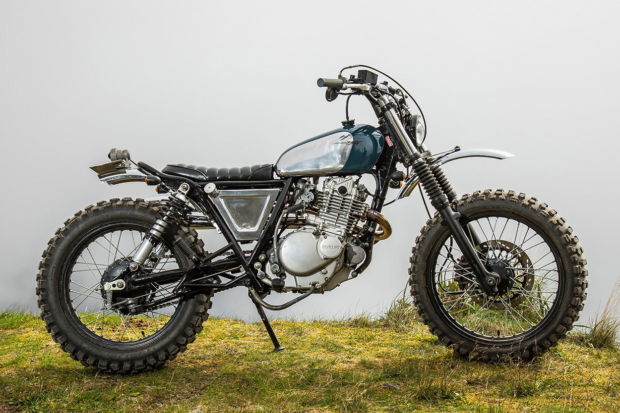 Having spent many years producing world-class custom Triumphs, he recently turned his considerable skills to the offroad genre. This is his latest, and it’s based on the Suzuki TU250, a bike so unassuming most Western riders wouldn’t recognise it if it started doing sideways slides on their privates.
