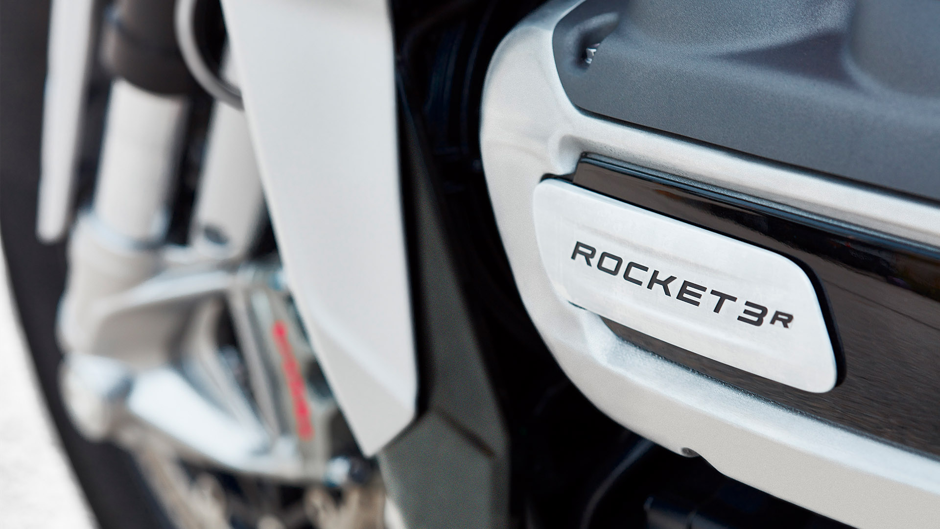 The new Rocket 3 motorcycle range benefits from a class-defining level of finish & detailing contributing to its magnificent style. These beautiful features include a muscular sculpted gas tank with Triumph’s signature design DNA, brushed stainless steel tank strap and aluminum Monza-style cap, brushed aluminum airbox cover, brushed aluminum Monza-style coolant and oil caps, machined fins on the crankcases, head and cam cover, brushed exhaust heat shields and end caps, and hidden folding pillion footrests with unique foldaway design.