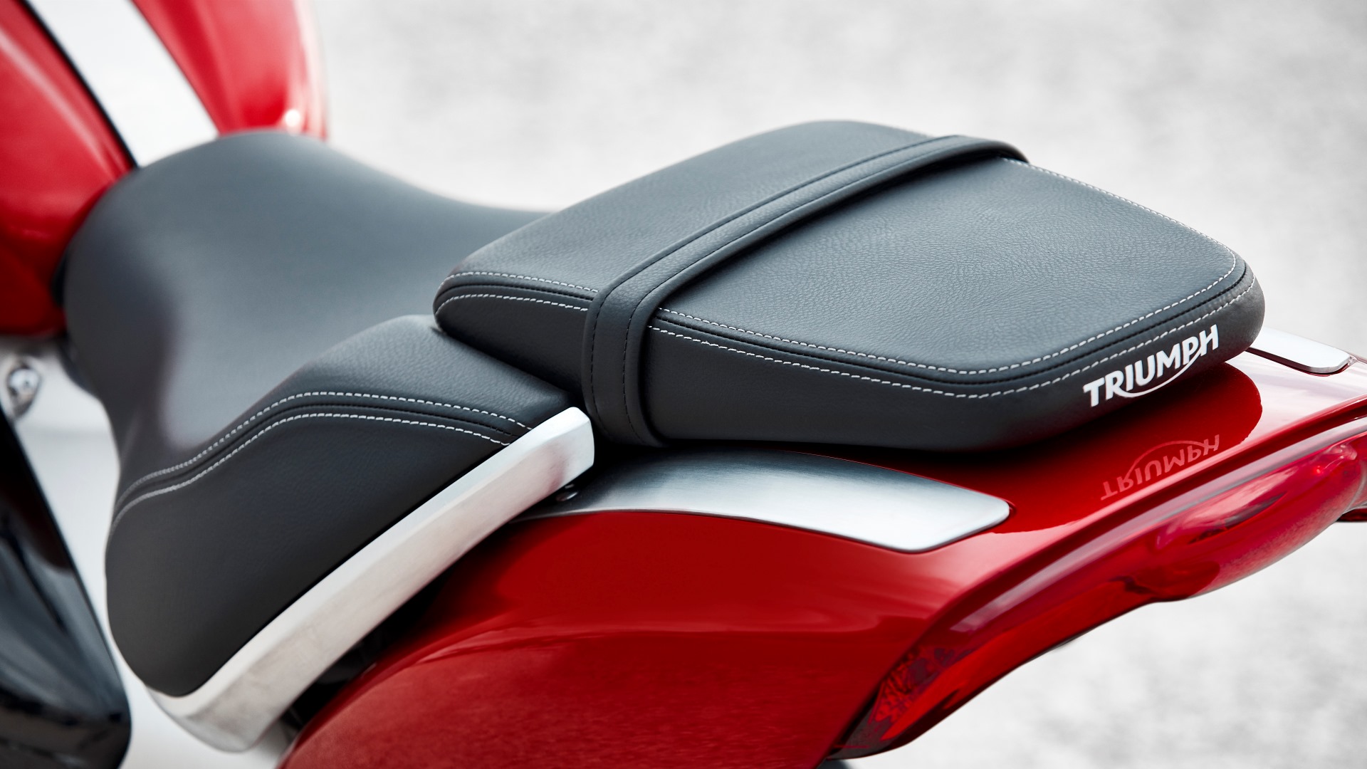 Enhancing the Rocket 3’s incredible aesthetics are a host of premium details and signature design features that maximize the bike’s muscular presence including: innovative sculpted 3-header exhaust run to highlight the imposing engine size; signature all-new twin LED headlight* with beautiful Triumph maker’s mark triangle branding; a unique seat setup for each bike with comfortable sculpted rider and pillion seats with dedicated tailored saddle that creates a flowing line through the bike – with the GT variant featuring an adjustable brushed aluminum pillion backrest – and all-LED lighting* with distinctive Daytime Running Lights* for maximum visibility.