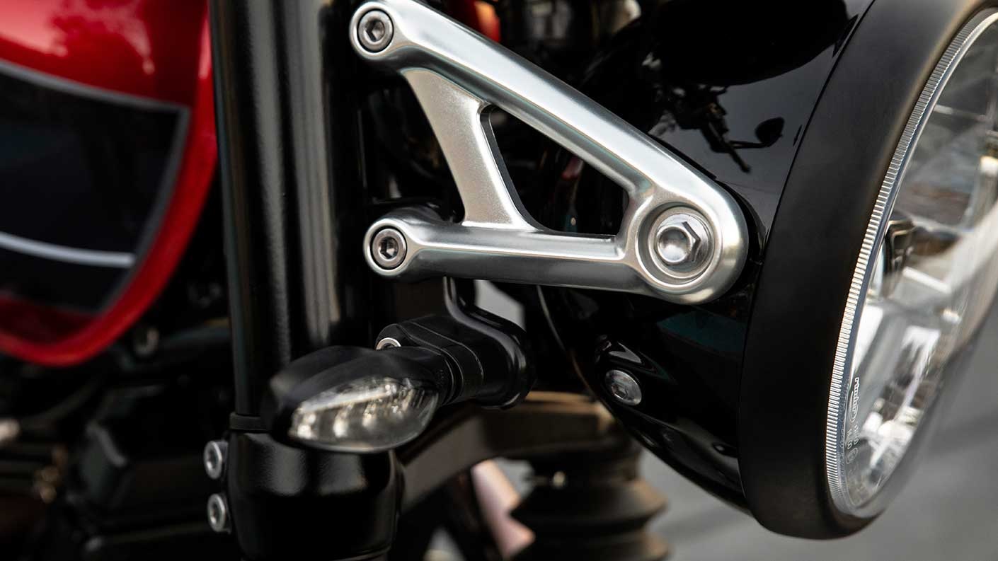 Triumph Speed Twin detail shot of brushed aluminium intake cover