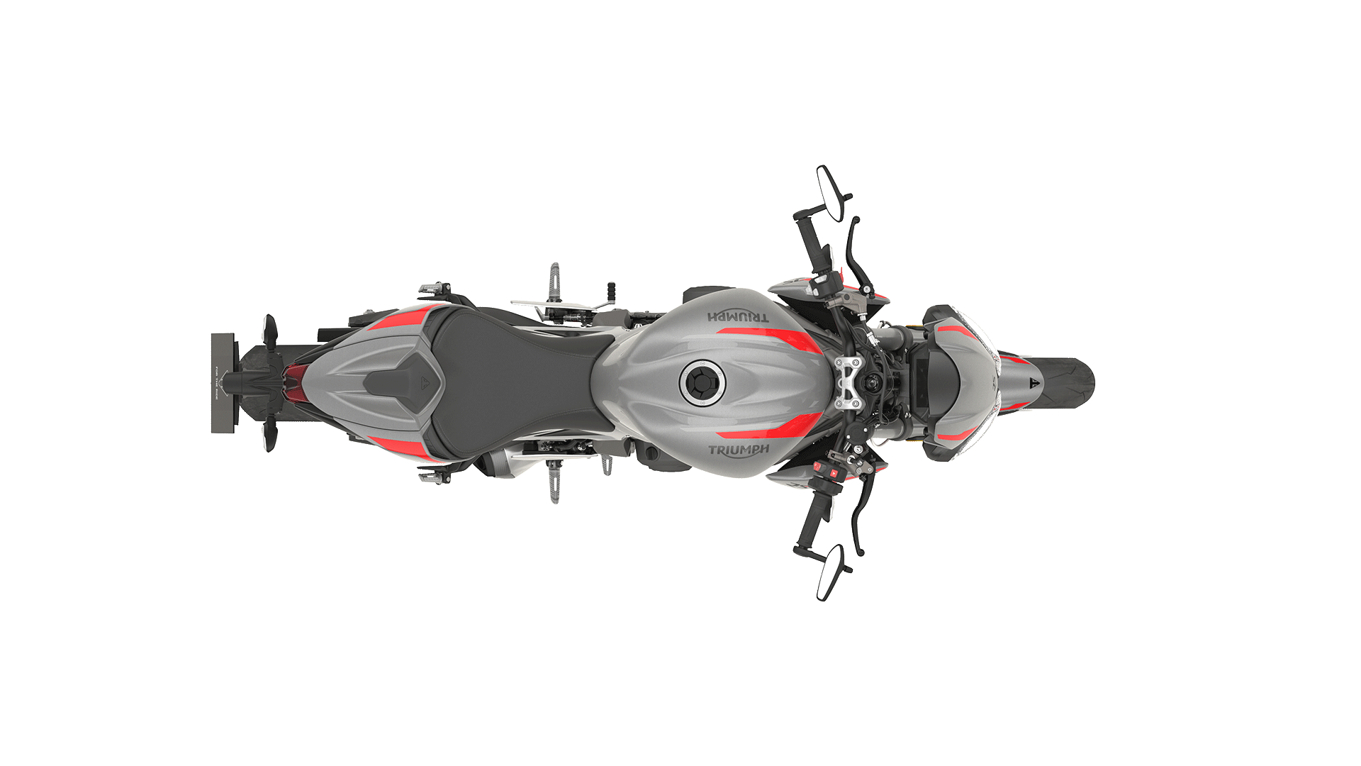 Adding to the Triumph’s exceptional build quality are a number of premium detailing touches. New shaped mirrors instantly give a more contemporary look to the RS front end, while the Street Triple’s handlebar clamp was restyled to feature distinctive Triumph branding. In addition, there are more harmonized component finishes like black control plates and rear footrest hangers, and satin metal heel guards and silencer, all further enhancing to the already eye-catching looks.