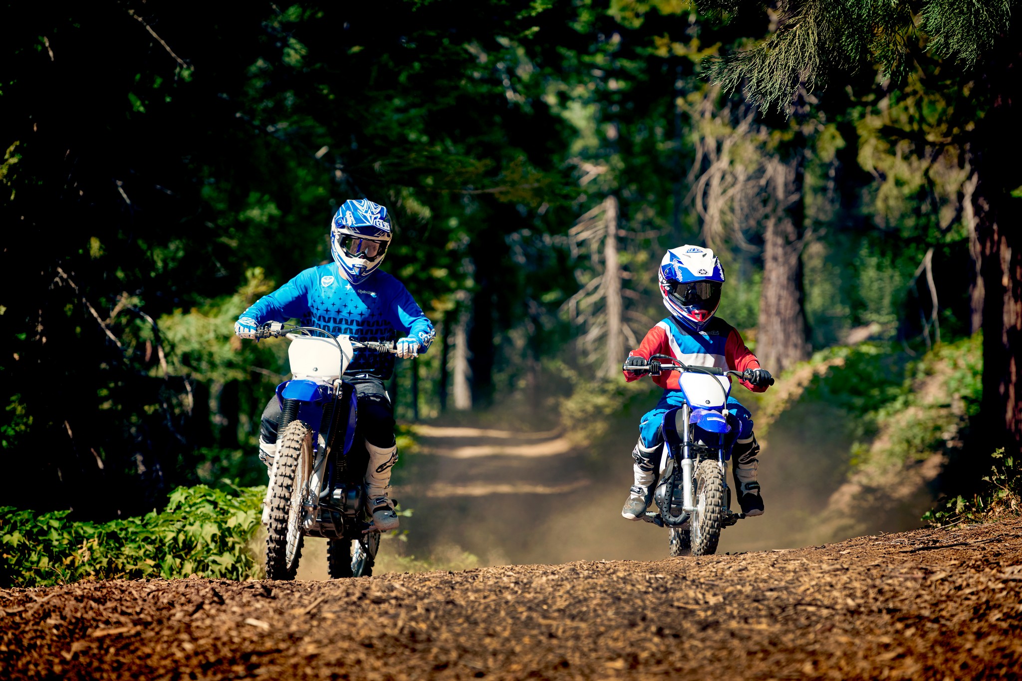Front and rear 80mm drum brakes deliver strong, dependable stopping power, and the rear’s activated by a right foot pedal just like the big YZs.