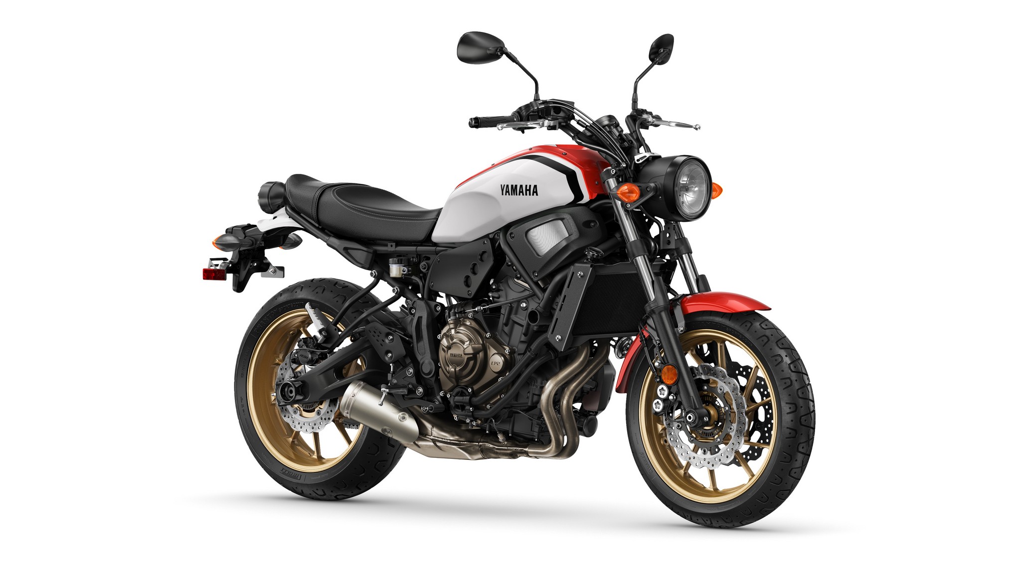 The XSR700 features a compact 689cc liquid-cooled, inline twin-cylinder, DOHC engine with fuel injection. This engine provides a unique power character with its outstanding low- to mid-range torque and very linear throttle response and complemented with strong high-rpm pulling power. This motor develops 50 foot pounds of torque and is designed to maximize riding excitement in the real world.