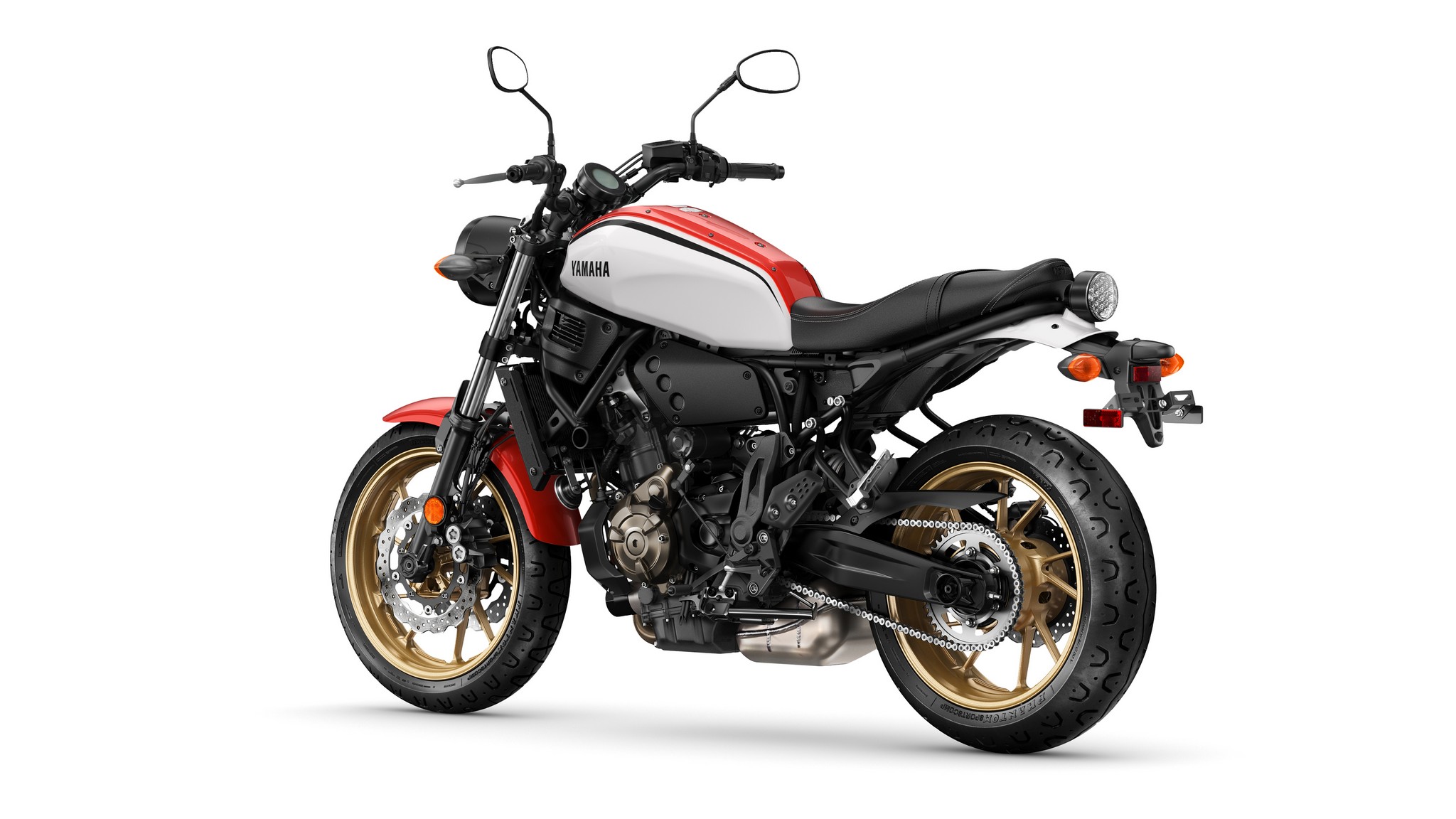 Lightweight 10-spoke cast aluminum wheels are fitted with a 120/70ZR17 front tire and 180/55ZR17 rear tire that provide excellent traction and handling feel. The XSR700 also features Pirelli® Phantom Sportcomp tires that combine modern construction and performance with a stylish retro design.