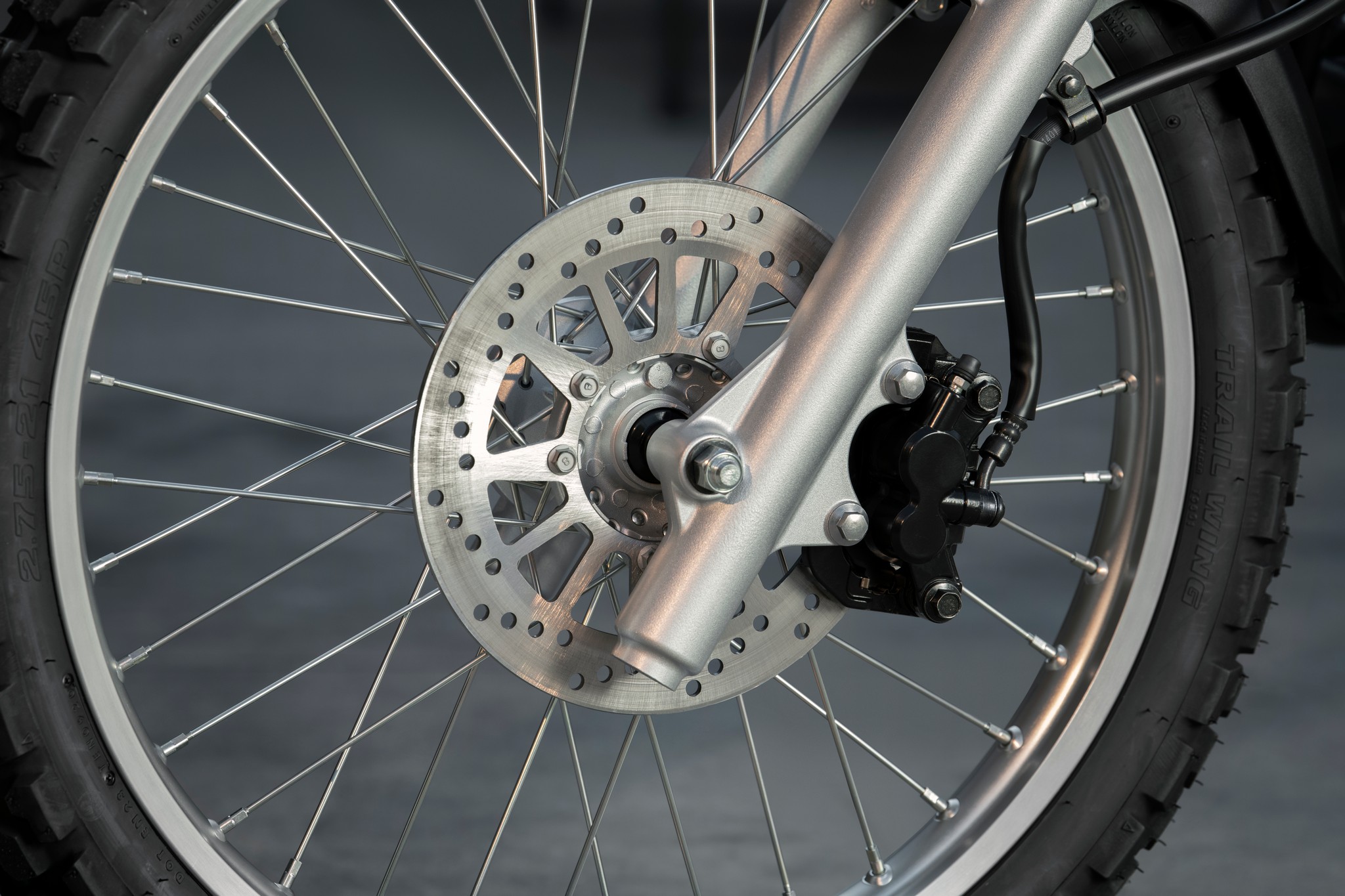 245mm front disc and 203mm rear disc brakes combine to deliver superb stopping power on both paved and unpaved surfaces.