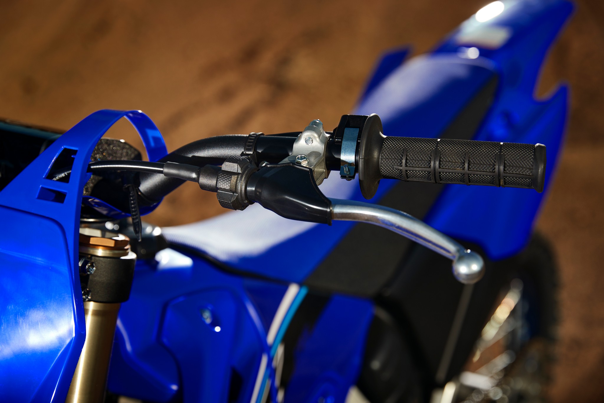 Complete with an aluminum handlebar, 2-position adjustable handlebar clamp, wide foot pegs, gripper seat and adjustable clutch lever with works-style cable adjuster, the YZ250 is ready to race out of the crate.