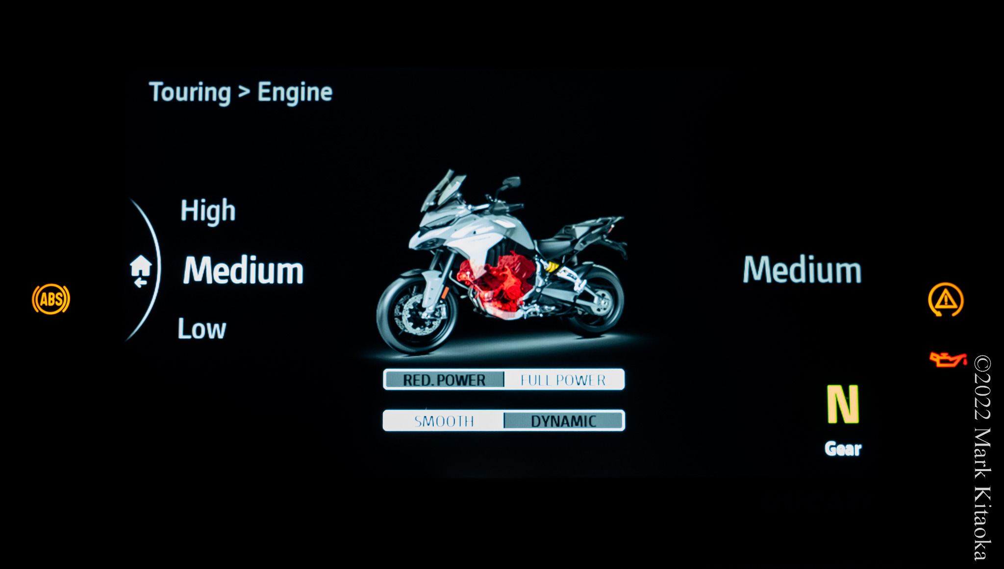 In the past I have installed heated grips on all of my street bikes. The type that wrap around the handlebars so that I can choose what grips I prefer. My MS came with the software update that allows control of the heated grips by simply using the button located on the forward side of the right hand switch gear. I believe that in earlier models of the MS you needed to press that button and then adjust the heat levels through the menu. Ducati has done away with that in a firmware update at the start of 2022.
