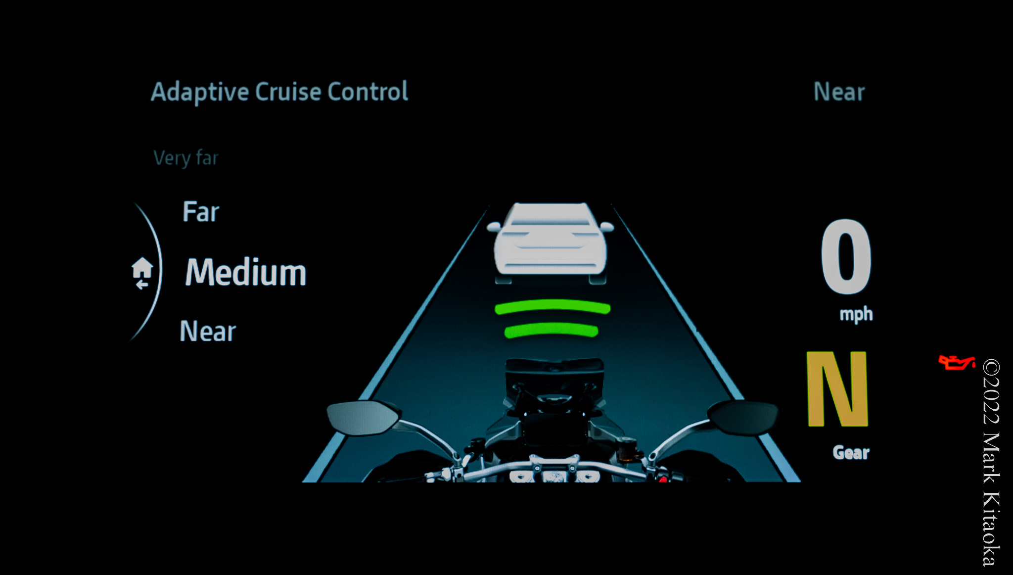 In those instances where I wish to move several lanes to the left or right when ACC is enabled, I simply twist the throttle forward, which deactivates ACC, and then twist the throttle to pass the vehicles across multiple lanes. I prefer this over tapping either brake to deactivate ACC. Once I’m happy in the lane I’m occupying, I simply press the RES button on the ACC and I’m back to cruising. I keep two fingers covering the front brake lever at all times. Because I don’t need to grip the throttle to maintain my speed, my hand is relaxed. Some may not like ACC, but I have found it performs well and adds safety and comfort to riding on the freeway. I become less fatigued, which is one of the factors that can lead to a lack of concentration.