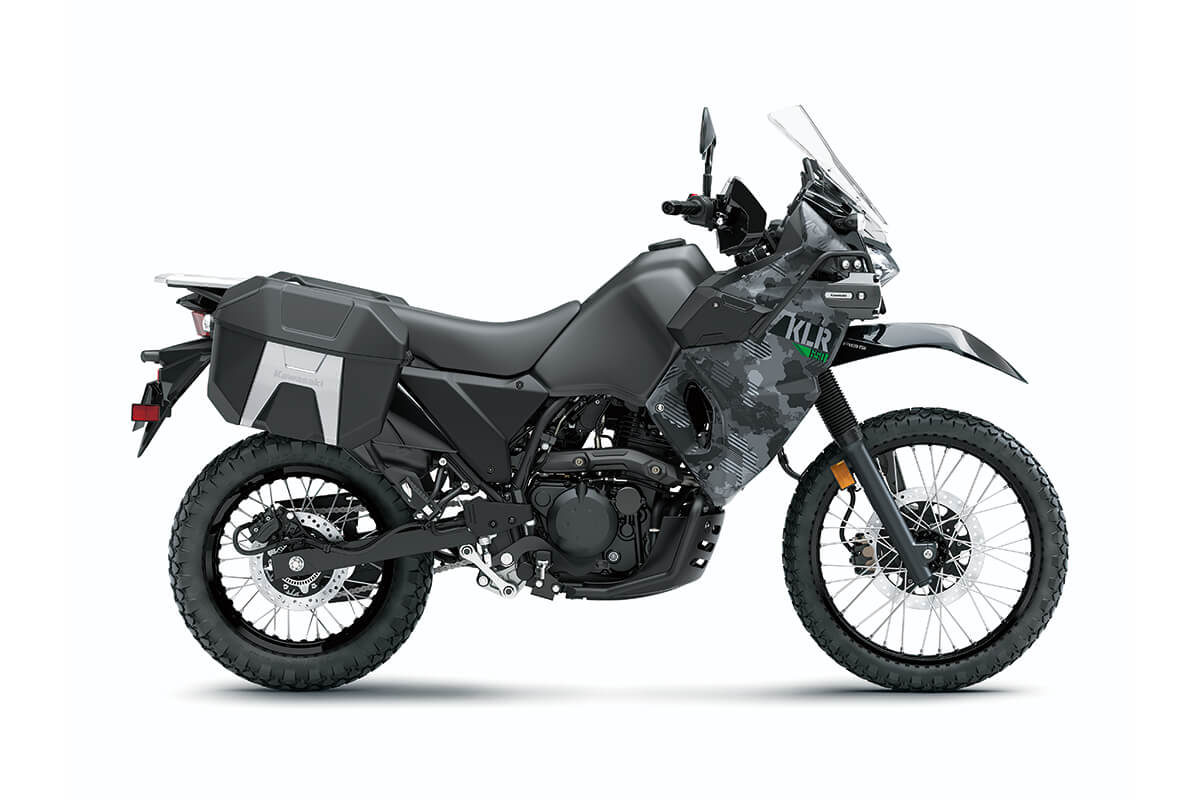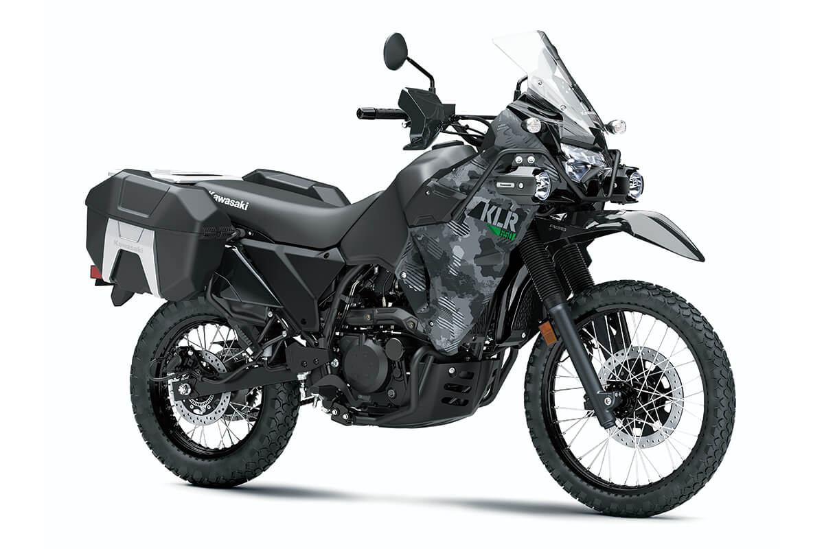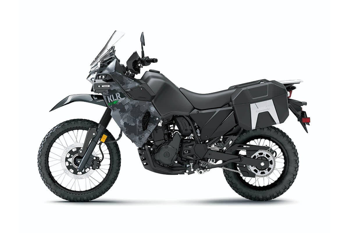 For 2021, the Kawasaki KLR 650 Adventure is available exclusively in a unique Cypher Camo Gray color option.