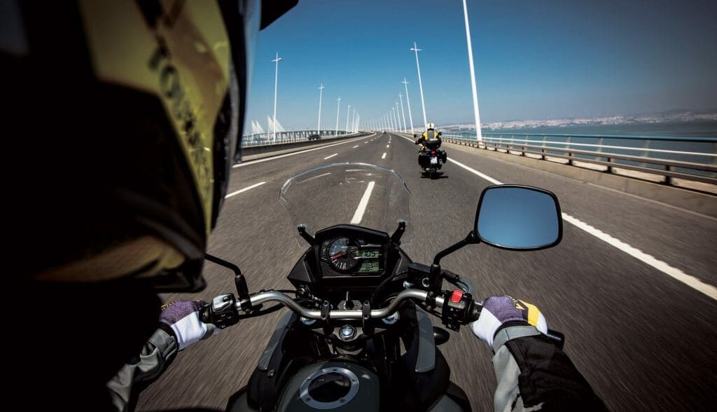 The TI-ISC on the V-Strom 650 has Suzuki’s Low RPM Assist feature that seamlessly adjusts engine speed during takeoff and low-speed riding to smooth the power delivery. It also helps reduce the possibility of the rider stalling the motorcycle.