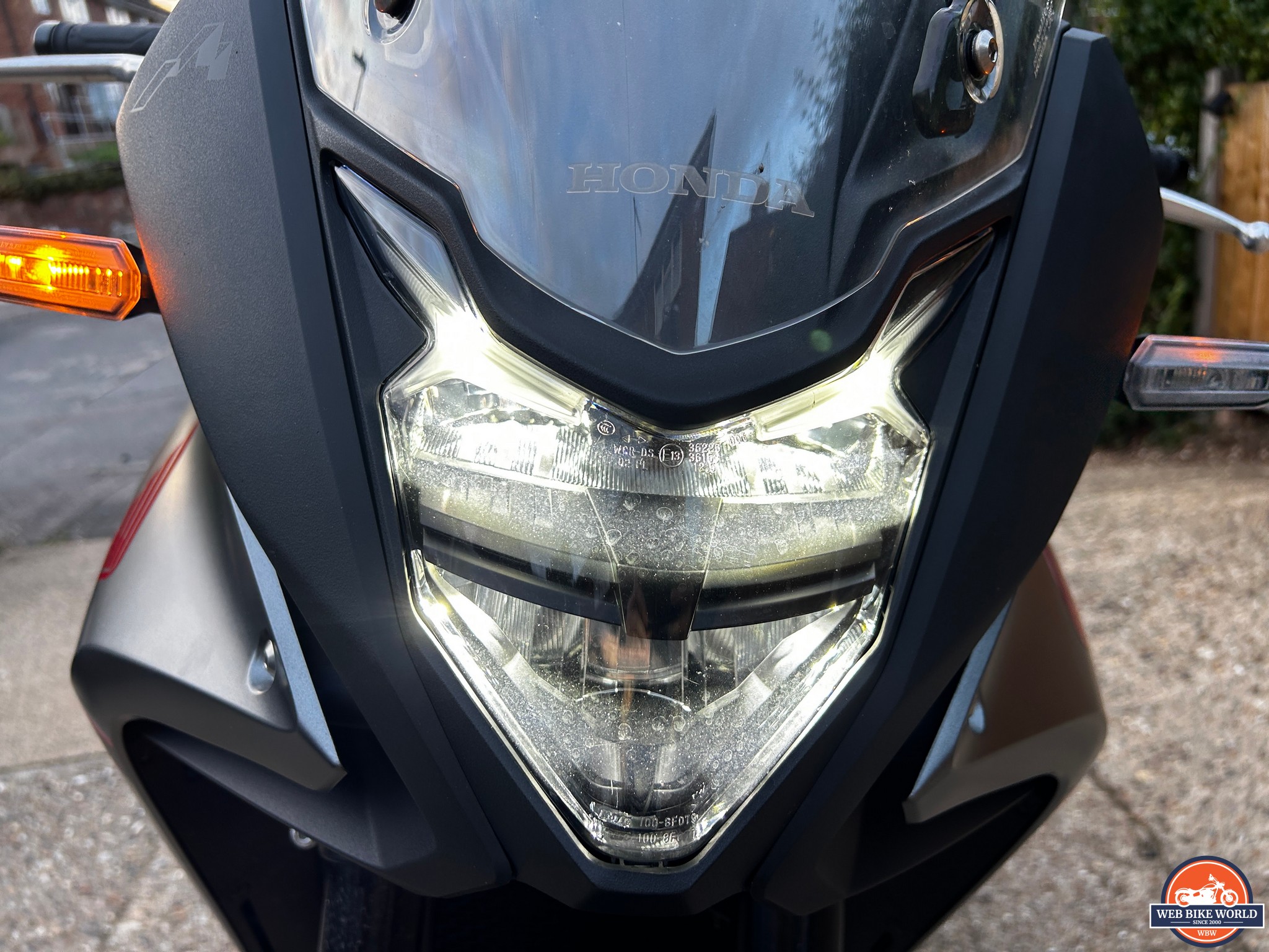 All the lights on the Transalp are LED. The rear indicators feature an Emergency Stop Signal (ESS) function which means that at a minimum speed of 56km/h with either brake working, if negative acceleration of a minimum of 6.0m/s2 is detected, the hazard lights flash to warn other road users a hard stop is in process.