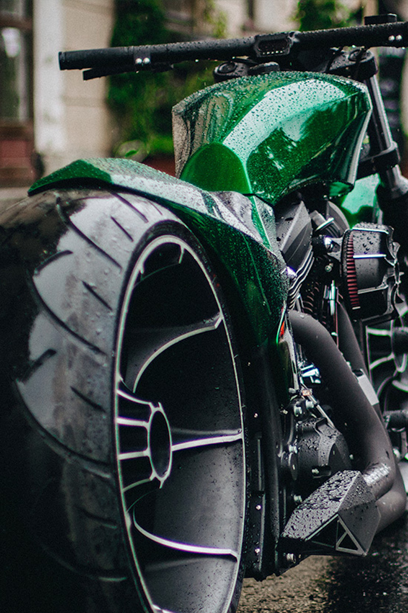 And what better machine to play the lean, mean green game than the iconic Harley Davidson Softail?