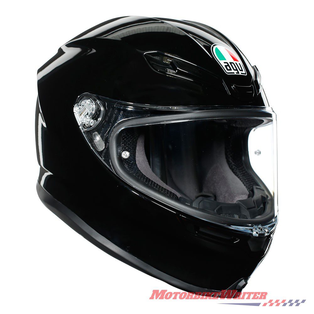 The new AGV K6 carbon helmet has more shell area and less visor mechanism for maximised protection, though the visor still offers peripheral vision of 190°.