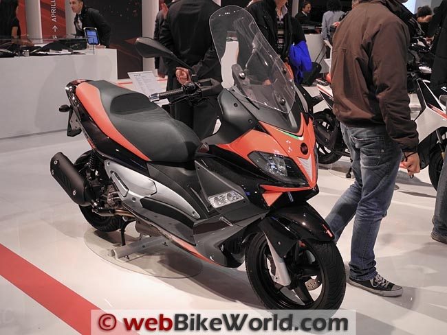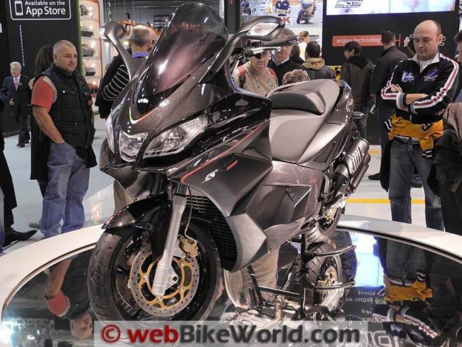 I did recognize the new Aprilia SRV scooter however. It was formally announced at the show. Remember the Aprilia Mana 850 GT I reviewed last year? Apparently, this is where its engine and transmission ended up. The SRV is listed as having an 850 cc, V-twin engine with 55.9 kW (76.0 HP?) at 7,750 RPM and maximum torque of 76.5 Nm at 6,000 RPM.