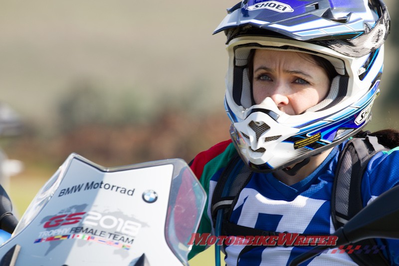 Aussie rider Julia Maguire had to ride blindfolded to win selection to compete at the International BMW GS Trophy in Mongolia next year.