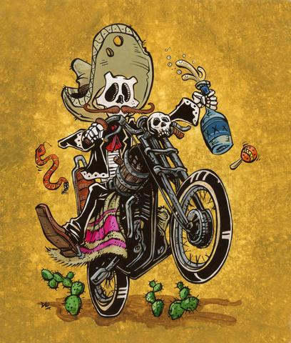 In several of his works of art, skeletons are featured riding motorcycles–something we all can relate to!