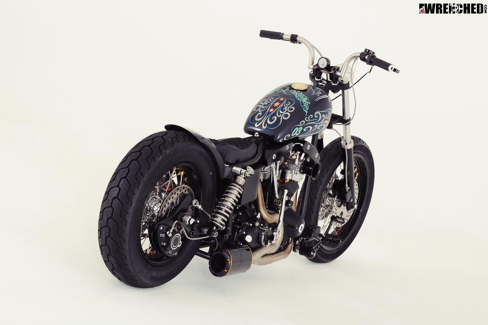 First of all I really like this bike. It’s lean, mean and clean. It’s a hot rod bike. Just how I like’em. Second, ever since I spotted it on the 100% Biker’s cover ( posted below) I wanted to see more of this bike. And no, not because of the chick… The second reason leads to me to my third… the man that built Bank Robber is one of my friends on Facebook . Yes, one of those of you I trash talk to/with, tag and all that sh#t ! Got into stupid jokes (from my side, of course) with Pete Pearson the other day and something instantly clicked. The wait was over. Everything was put in motion so very fast and here, a day after, you have a full cover story and some bitchin pictures of the bike. I understand that this 1979 Harley Davidson FXS Lowrider is Pete’s dream bike ever since he was a kid. After reading that I’ve decided that it’s time to write a few words to go along with the pictures Lisa Pearson sent.” -dWrenched