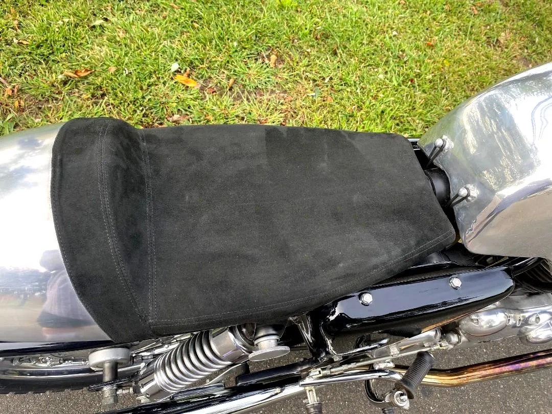 The motorcycle is propelled by an 828cc parallel twin mated to a four-speed gearbox. It is equipped with 19″ wire-spoke wheels, a front disc brake, adjustable engine mounts, a steering damper, and a center stand.