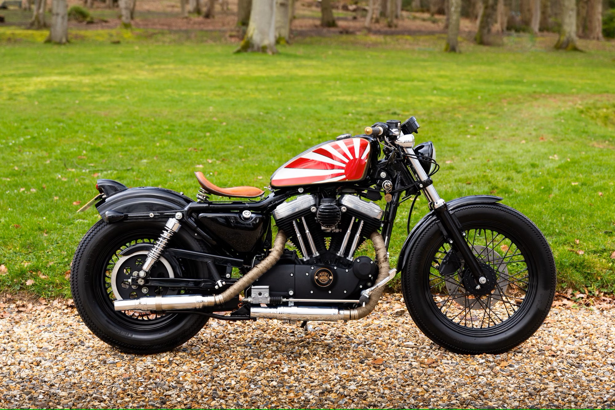 This Harley-Davidson Sportster is a unique modern cruiser, custom-built by renowned specialist Charlie Stockwell at Warr’s Harley-Davidson as a retirement gift for bike enthusiast and former Olympic high jumper, Ben Challenger. Replacing its original 883cc V-twin is a 1300cc unit paired with a five-speed manual transmission.