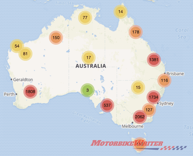 The NTRC website includes a “Motorcycle cluster map” which is an interactive map of motorcycle theft.