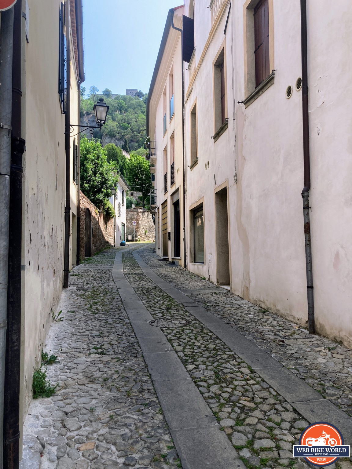 We rode into Monselice which is an historic old town with a castle and parked in the town square. We found coffee and a pastry (you’re going to see a pattern emerging here ……!)
