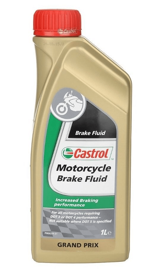 Usually it’s DOT 4 or 5 in motorcycles. DO NOT mix any different fluid with silicone based DOT 5 fluid. They won’t mix well and you’ll have big issues. There are non-silicone based DOT 5 brake fluids produced now on the market just to complicate things.