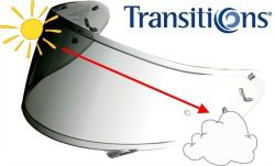 The transitions photochromic technology enables you to transition from clear visor to dark in a matter of seconds in sunlight.