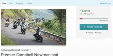 An online petition has been started against the Queensland Government’s proposed legislation that discriminates against people riding motorcycles. The petition is being run through Change.org rather than the government’s own ePetition since the red tape involved with the latter would mean it may not be ready in time for the...