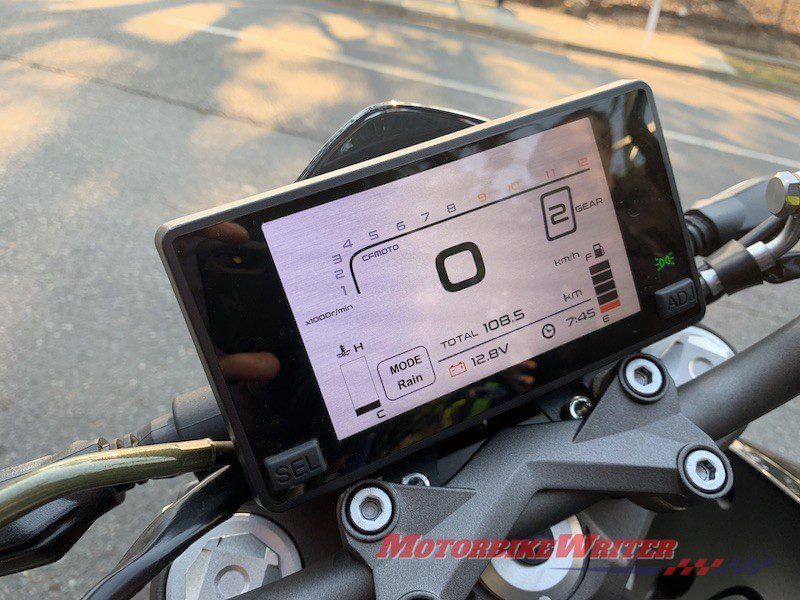 We like the modern, angular styling of CFMoto’s range which has been outsourced to Kiska, the Austrian design house which is also responsible for many KTM models.