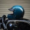 According to the company, this is the fourth Builder Edition Collaboration the company has done, and it wanted to partner with the famous Madrid manufacturer. The helmet has a unique diamond-inspired green to black gradient graphic that sets it apart from the other helmet options out there. Also, the unique style of the full-face lid, to begin with, is dramatically different than many other helmets on the market. Inside, the helmet features a saddle-stitched interior. That interior is made of lamb leather and black calf leather features on the trim. There is a clear short visor that you can add that comes with the helmet.