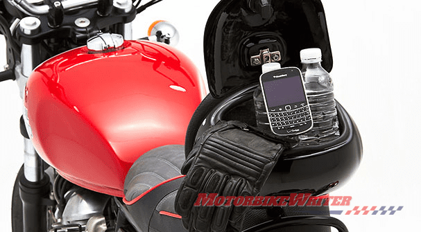 There is also a small, plastic four-litre top box ($US393) available for the backrest to store wets, gloves, water, maps, etc.