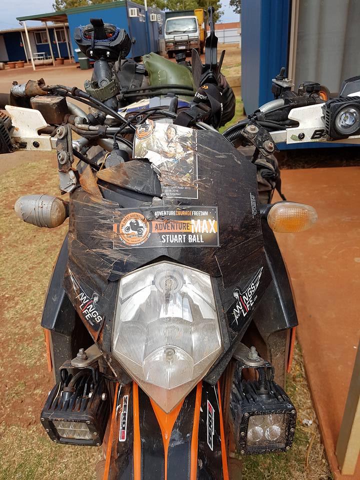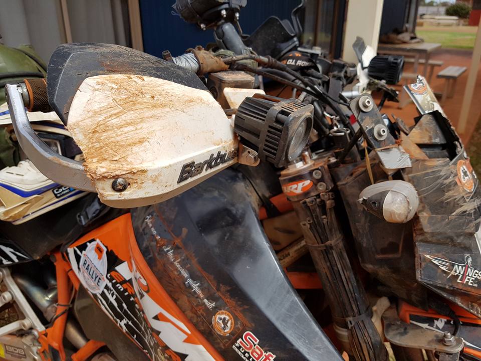 Stuart patched up himself and his KTM 920SE and battled on to the medical centre at Warburton where he hung up his boots last night on his second attempt at the record.