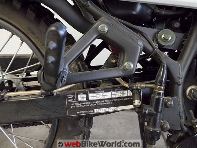 - Tires: Front: 3.00 x 21 Knobby DOT Approved. Rear: 4.60 x 18 DOT Approved.