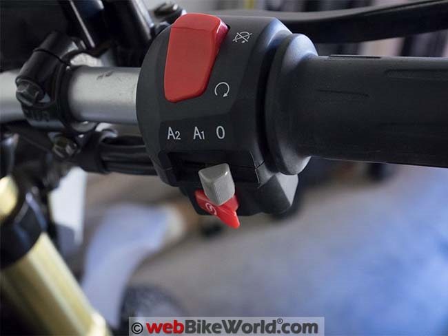 A1 and A2 switch on the power to the connectors under the body panel. This is a neat idea and it removes the need for an additional switch for heated grips or if you ride at night, some much-needed auxiliary lighting.