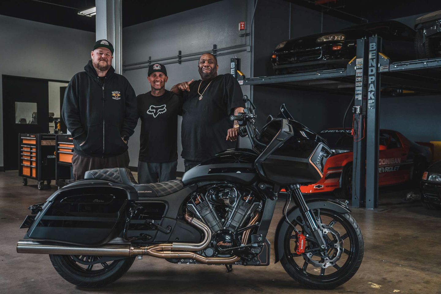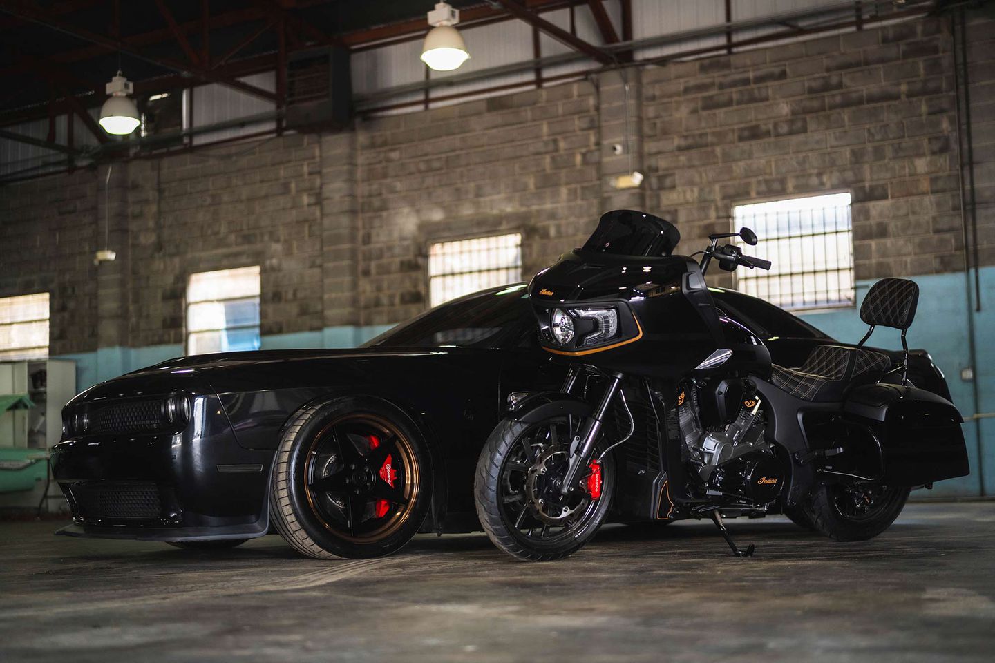 The operative presented by Killer Mike to the shop: ‘build an Indian Challenger that would match Mike’s custom car collection, all in black paint.’(via CycleWorld).