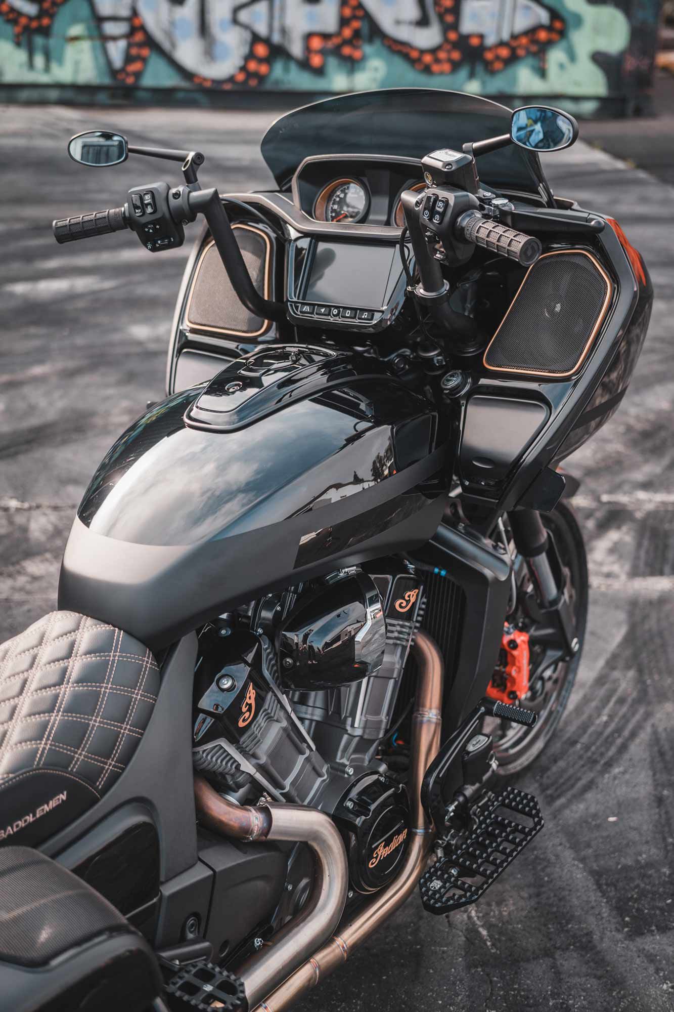 Meet the bagger built for Atlanta-based verbiage aficionado and recent host of the hit Netflix show ‘Trigger Warning,’ Killer Mike. He’s a big fan of black – and despite blacked-out baggers being a popular choice in the common crowd, builders Carey Hart and Big B have somehow managed to make a stunning build that sticks out even amongst the one-off pieces floating around in today’s industry.