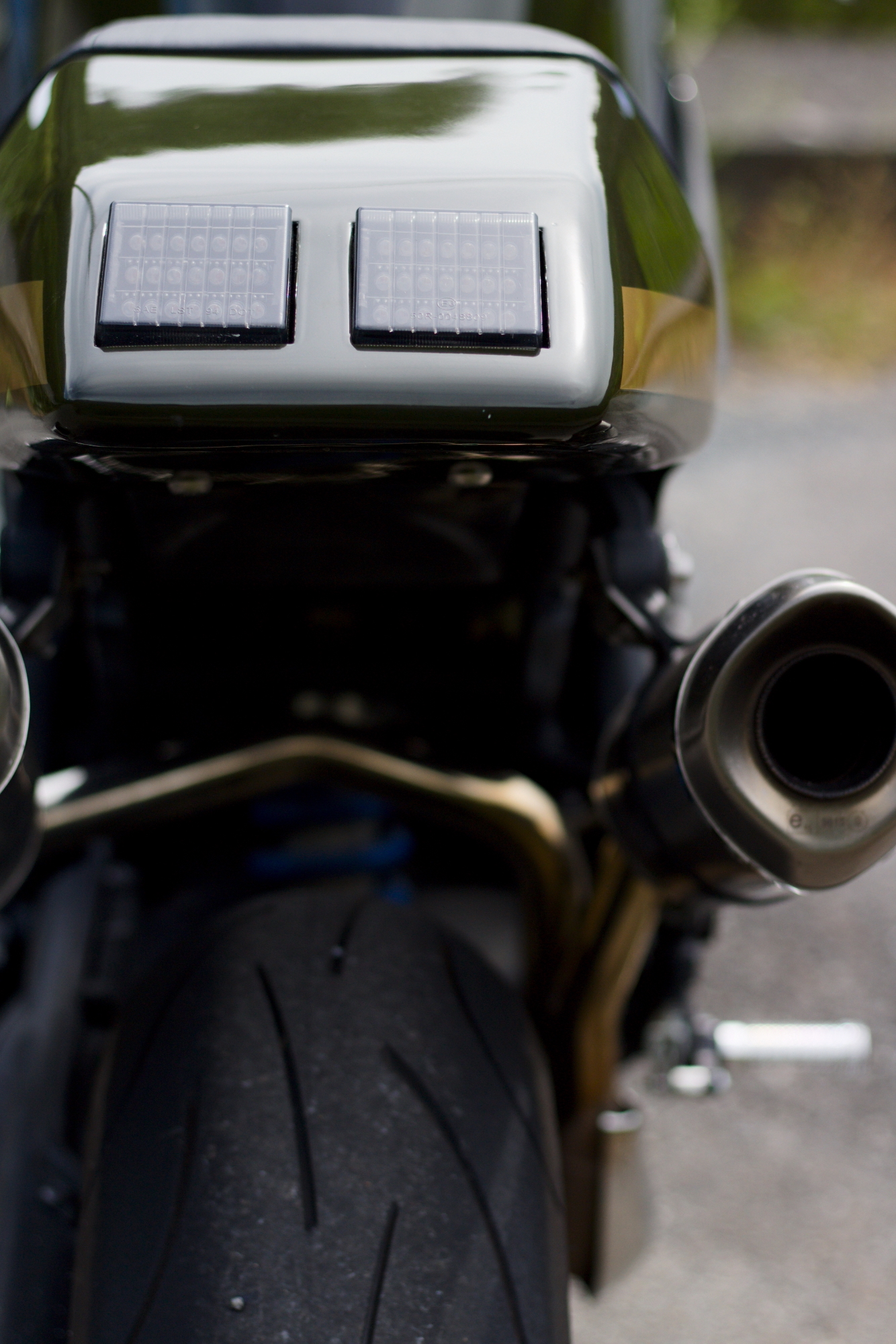 The tail is custom created from a Ducati 916, allowing the visual angles of the bike to flow from the head to the end as seamlessly as possible.