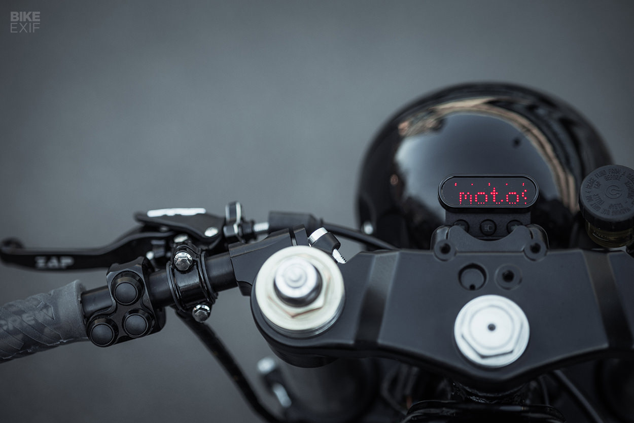 The project involved, among other things, Honda CBR1000RR forks (and calipers, complete with a frame conversion stem from Cognito Moto), mated to spoked wheels (yes, you heard right), with Chris’s plan as thus: