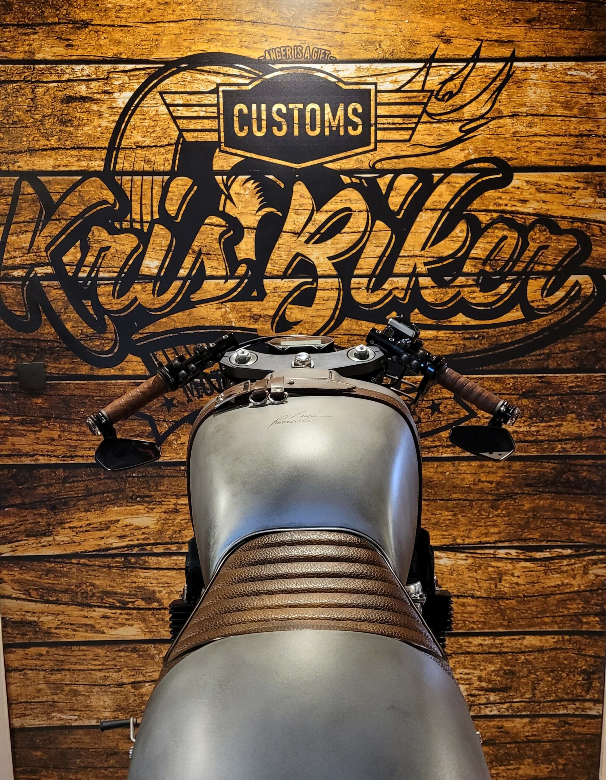 KrisBiker even added the final touch of the customer’s final request – the parents’ names of the bike’s new NY owner, elegantly imprinted at the top of the tank.