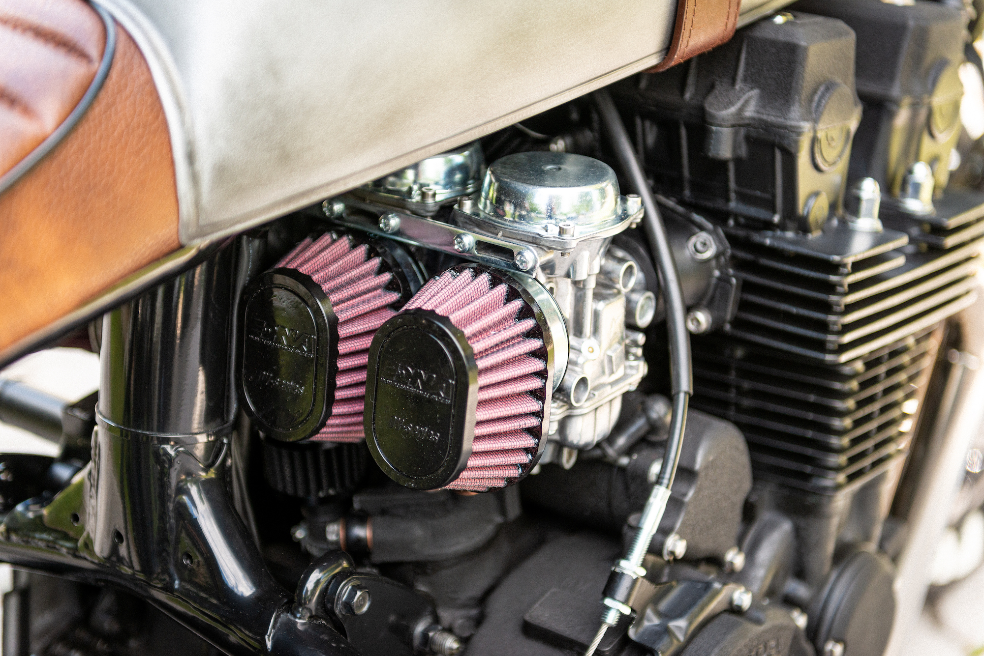 Slap some Ohlins rear shocks on, along with a custom seat cowl (painted with the same old steel effect), custom rear sets, re-jeted carbs and a nice Motogadet m-Switch with redesigned electrical installation, and you’ve got yourself a bike that not only looks lickable, but runs like a dream.