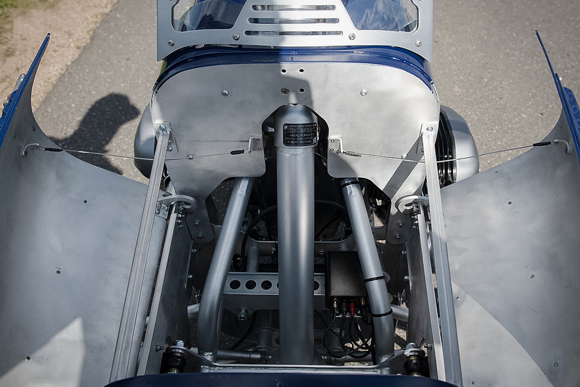 Naturally, this meant engineering the chassis’ final form into something capable of handling trike-happy ergonomics. One new subframe and a neat double-wishbone independent bit of suspension later, and we’re starting to see the appeal of being the third wheel – with the help of an extended steering neck, of course.