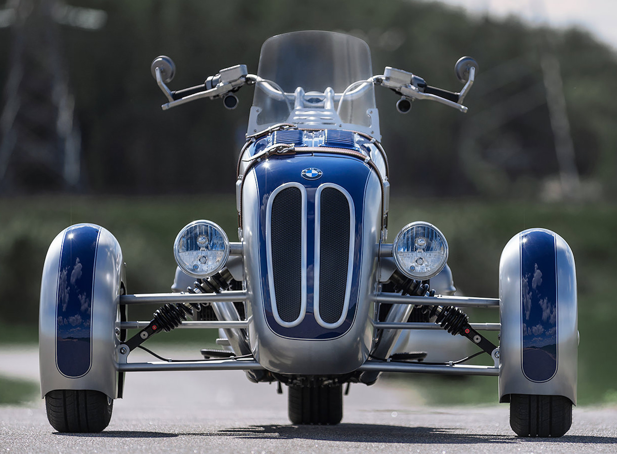 When the hood straps, louvered panels, and dual-grill nose cone play to the world-war auto era designs of Peter Szymanowski (via Wikipedia) – and this particular R 18’s one wheel the wiser.