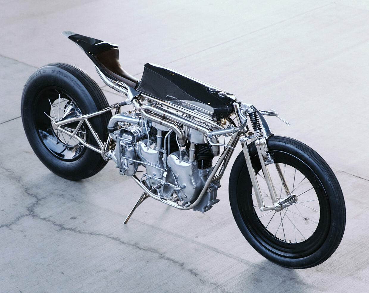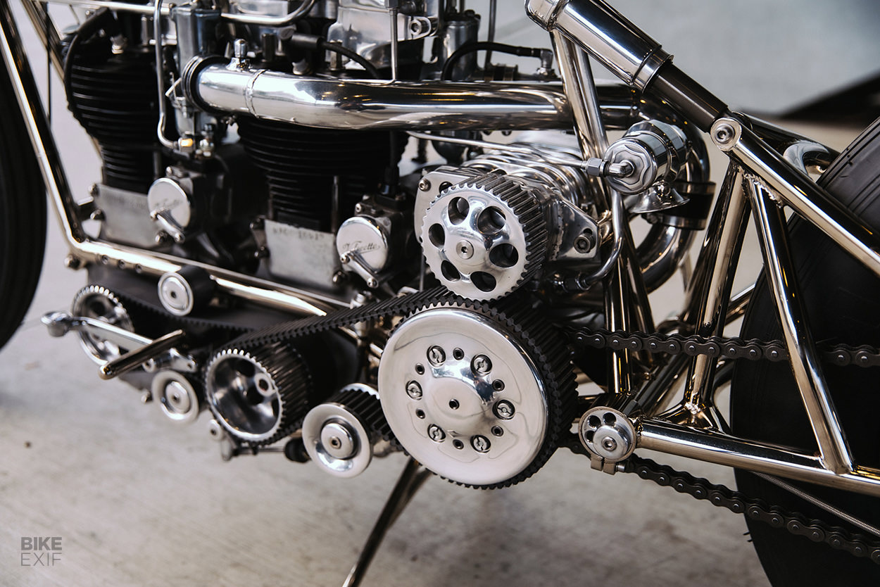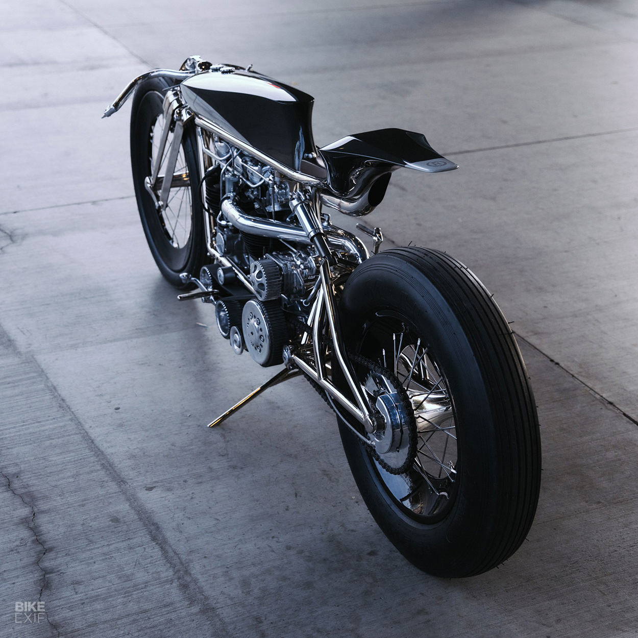 To this dynamic duo was then attached a four-speed Matchless transmission, with the whole kit and caboodle nestled in a handspun chromoly-steel chassis.