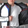 The jacket has a built-in pocket, accessible through a zipper along the inside lower hem at the rear, which will fit a Dainese G1 or G2 “Wave” back protector. The back protector is an $89.95 option and probably a good idea, as most riders will go without but a nice built-in back protector is always there when you need it.