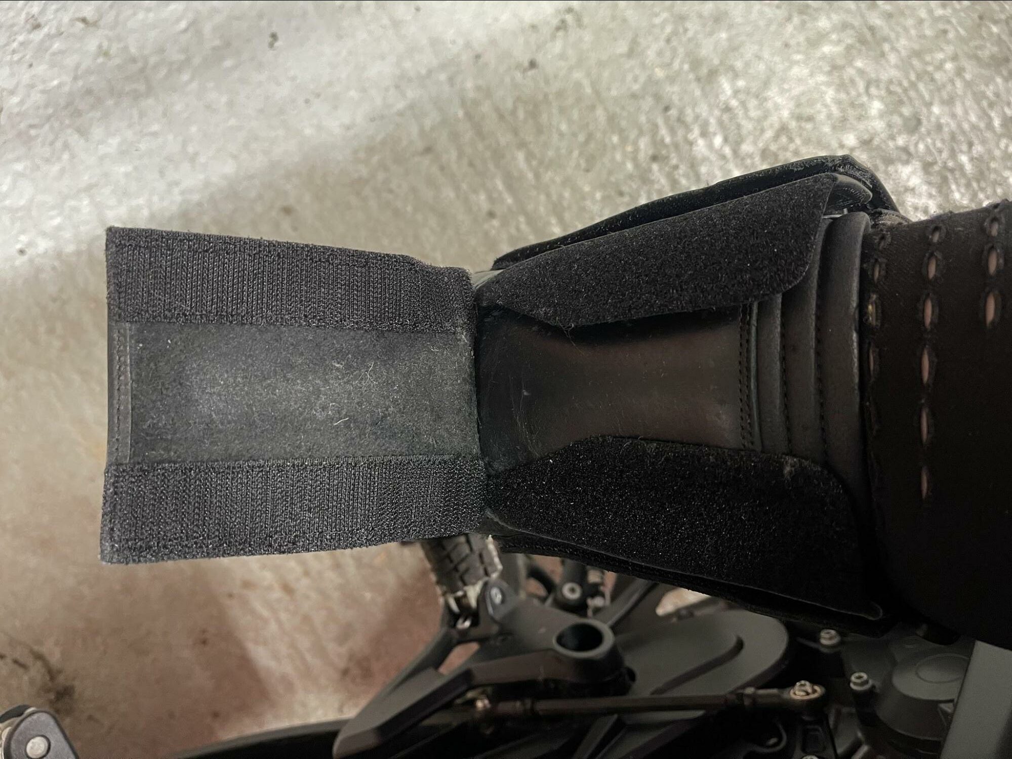There are two zips at the front, one on each side which is just fantastic. This means you can slip your foot in and out with ease. And the genius of this boot is the velcro adjustment at the back for those with bigger calves or for when you want to tuck your trousers inside the boot. I have worn mine with Rukka Comfornina textiles and they fit over the boot. But for day trips I wore a pair of motorcycling jeans and those fitted inside the boot. The velcro adjustment at the back was very much needed to ensure the boot wasn’t too tight and that there was no unnecessary pressure on the zips.